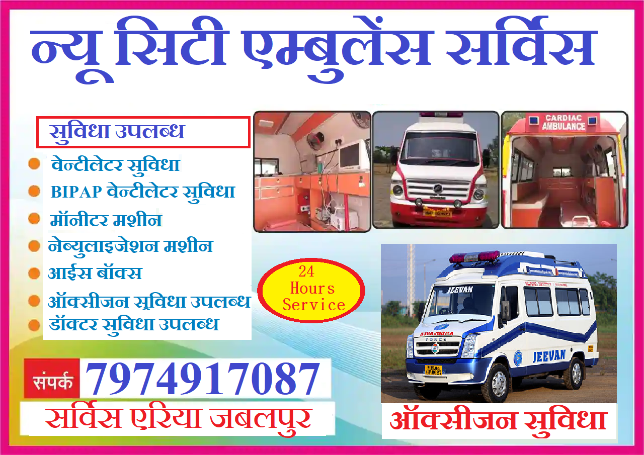 New City Ambulance Service in Jabalpur City, Jabalpur is a top player in the category Ambulance Services in the Jabalpur. It is known to provide top service in the following categories: Ambulance Services, Ventilator Ambulance Services, AC Ambulance Services, Cardiac Care Ambulance Services, Oxygen System Ambulance Services, Cardio Vascular Life Support Ambulance Services, Critical Life Support Ambulance Services, Trauma Ambulance Services.